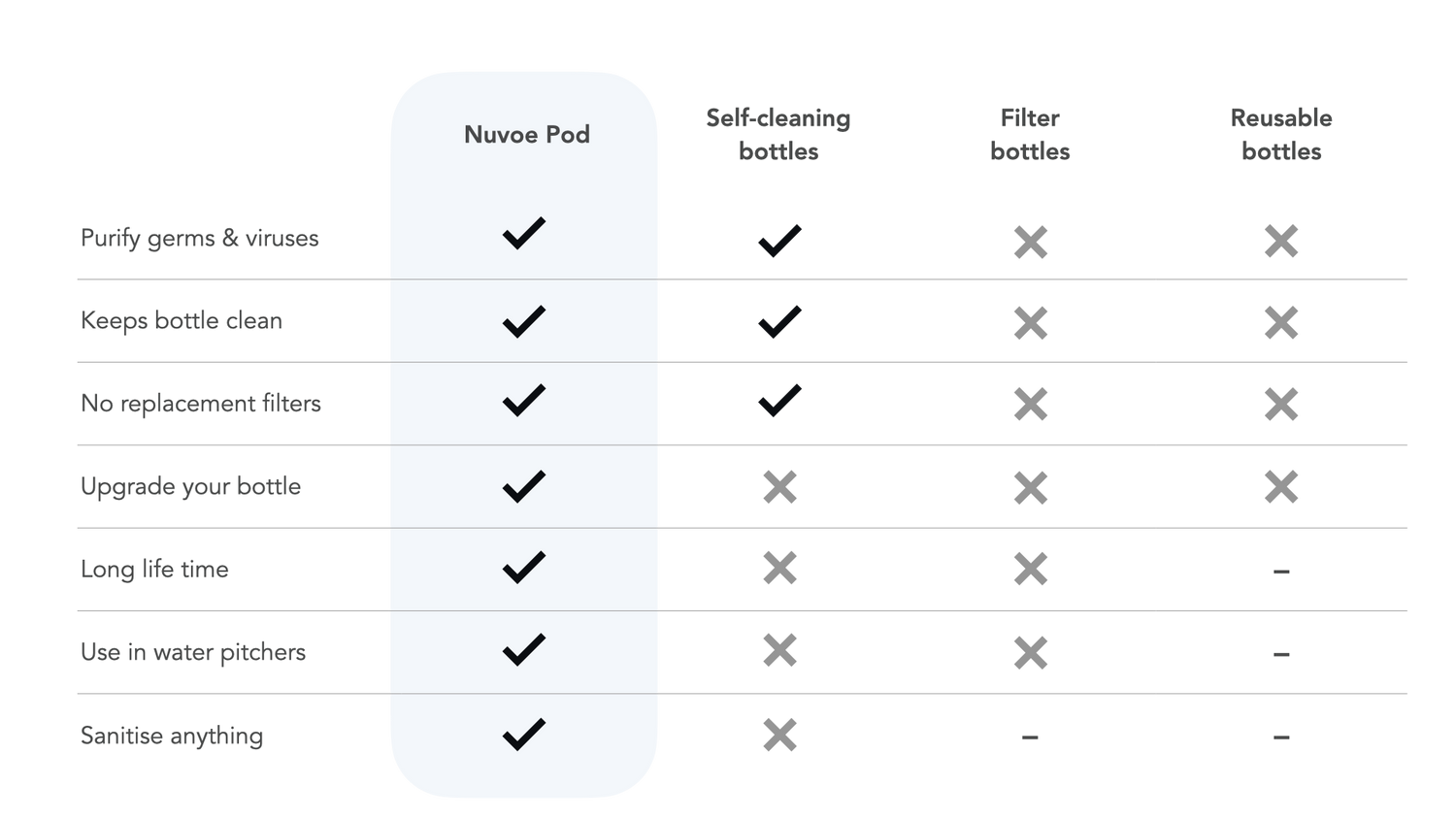 No repeat cost and waste of consumables. Nuvoe Pod is a filter-free, all-in-one, single purchase solution.